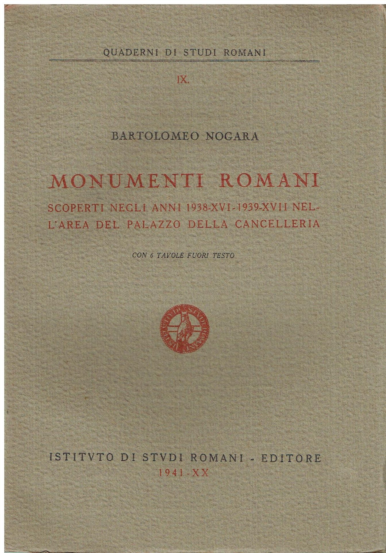 Monumenti romani scoperti negli anni 1938-16.-1939-17. nell'area del Palazzo della Cancelleria | Libri antichi e moderni | Bartolomeo Nogara, ,Bartolomeo Nogara