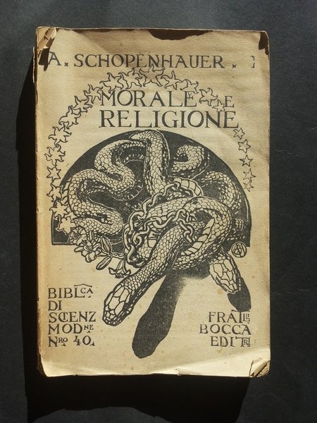 Un volume (24 cm) di 316 pagine. Sommario: Riflessioni sull'Etica. Sul diritto e sulla politica. Sulla dottrina dell'indistruttibilità' del nostro vero essere nella morte. Sulla dottrina della vanità dell'esistenza. Sull'infelicità' dell'esistenza. Del suicidio. Dell'affermazione e della negazione della volontà di vivere. Sulla religione. Note sulla letteratura sanscrita. Alcune considerazioni archeologiche. Alcune considerazioni mitologiche. - Brossura editoriale con xilografia alla copertina, nella collana Biblioteca di scienze moderne (40); dorso spaccato e brunito, per il resto buon esemplare.