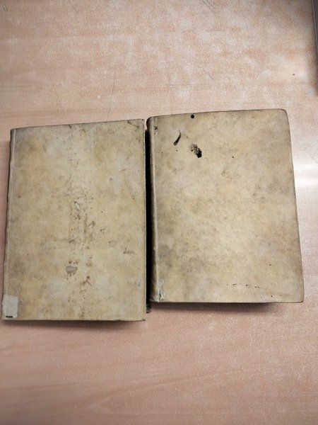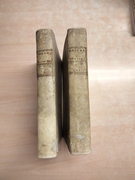 2 voll., in 8°, p. perg., pp. XXVIII + 519 (1° tomo) + pp. XXIV + pp. 628 (2° tomo). Tagli marmorizzati. Appunti manoscritti sui front. Fioriture. Lievi mende ai piatti . T.A.