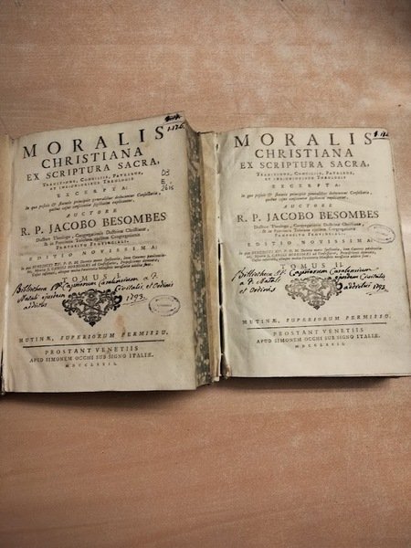 Moralis Christiana ex Scriptura Sacra, traditione, Conciliis, Patribus, & insignioribus Theologis excerpta: in qua positis & statutis principiis generalibus deducuntur Consectaria i quibus casus conscientia sigillatim explicantur. | Libri antichi e moderni | Besombes Jacobo.
