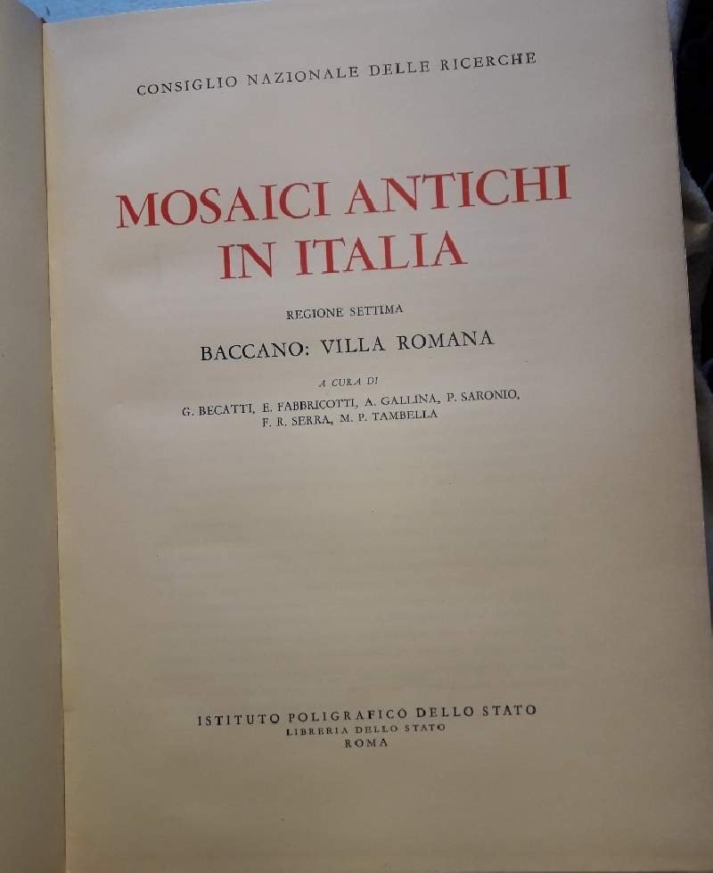 MOSAICI ANTICHI IN ITALIA-REGIONE SETTIMA-BACCANO:VILLA ROMANA( 1970) | Libri antichi e moderni | AA. VV.