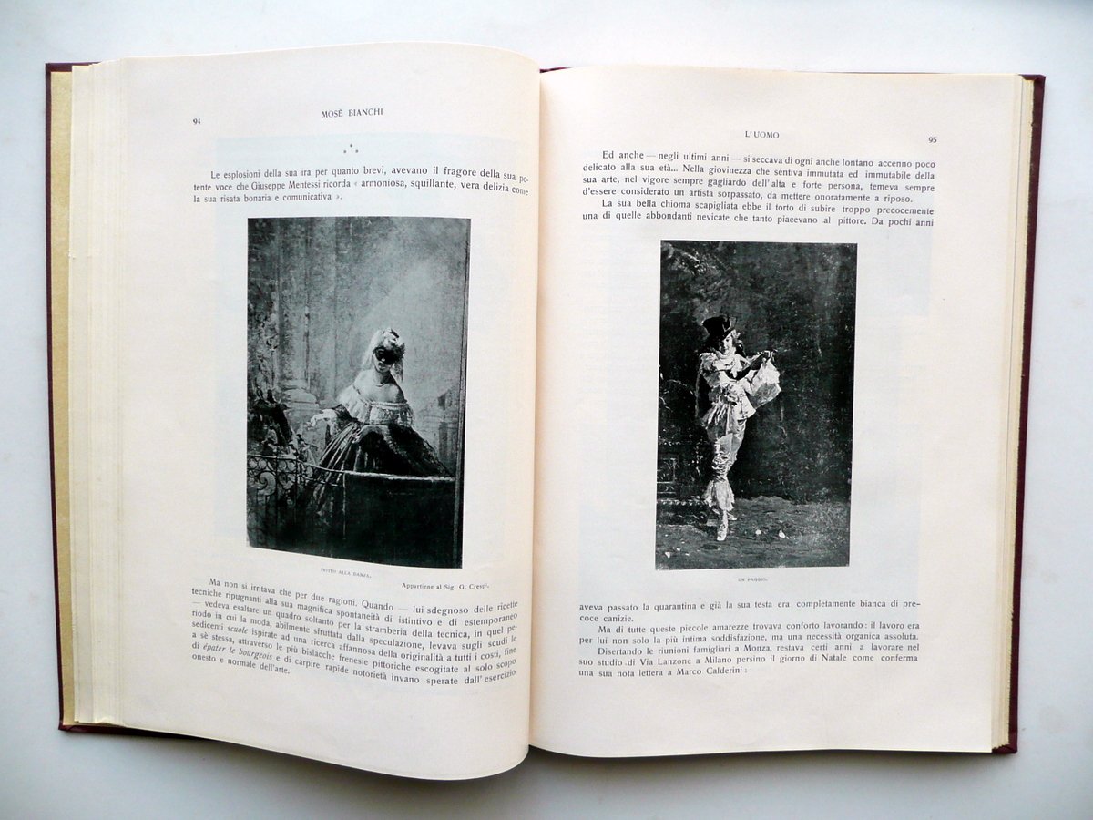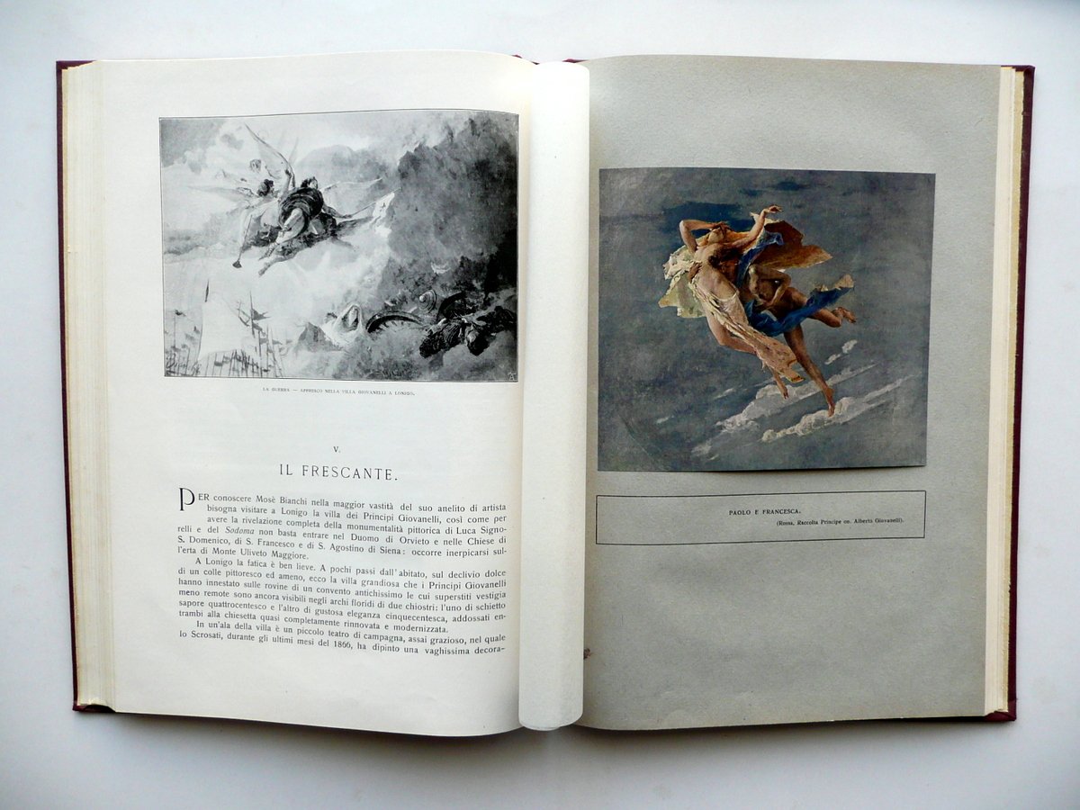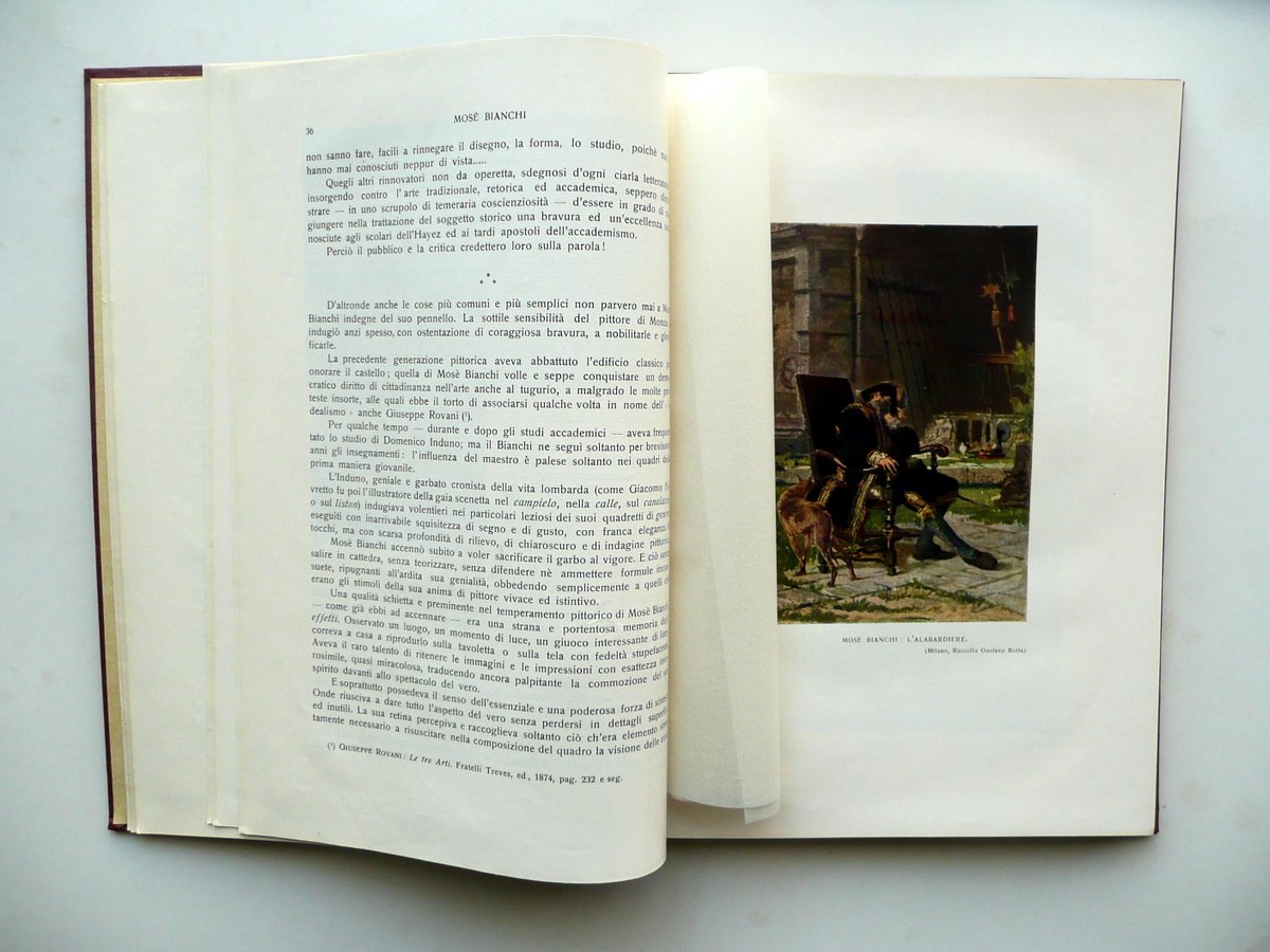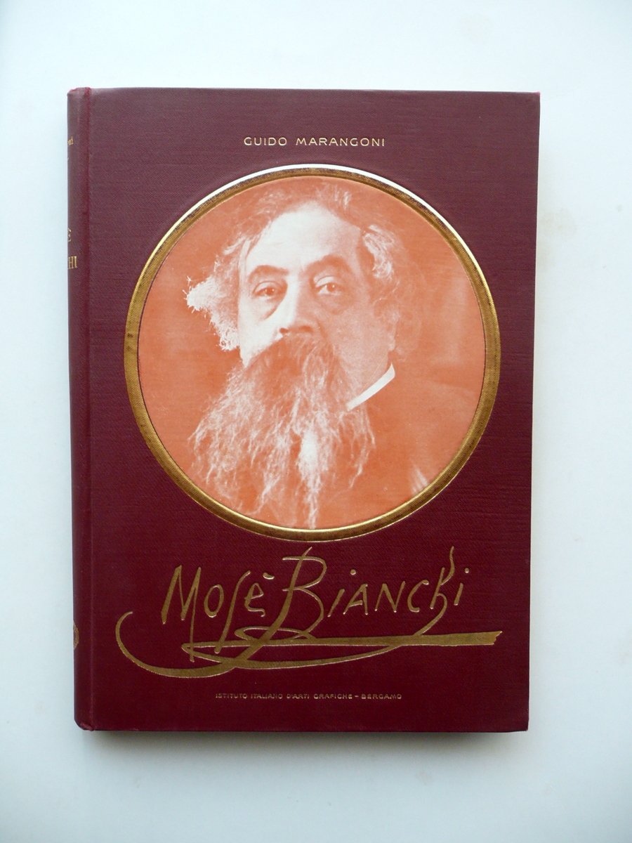Guido Marangoni, Mosè Bianchi Con 229 illustrazioni e 5 tavole a colori Istituto Italiano di Arti Grafiche, Bergamo, s. d. (anni '30 del Novecento circa); cm 28x20, pp. 264 con 229 illustrazioni in b/n nel t. e fuori t., e con 5 belle tavole a col. fuori t., protette da velina (una è applicata). Tutta tela ed. con titolo in oro al dorso e al piatto ant., quest'ultimo con applicato un ritratto fotografico seppiato del Bianchi (vedi foto). Condizioni di conservazione Esemplare ben conservato con tracce d'uso; piatto post. con alcune minuscole macchiette e graffietti. Interni buoni. SETT126.L12275 N