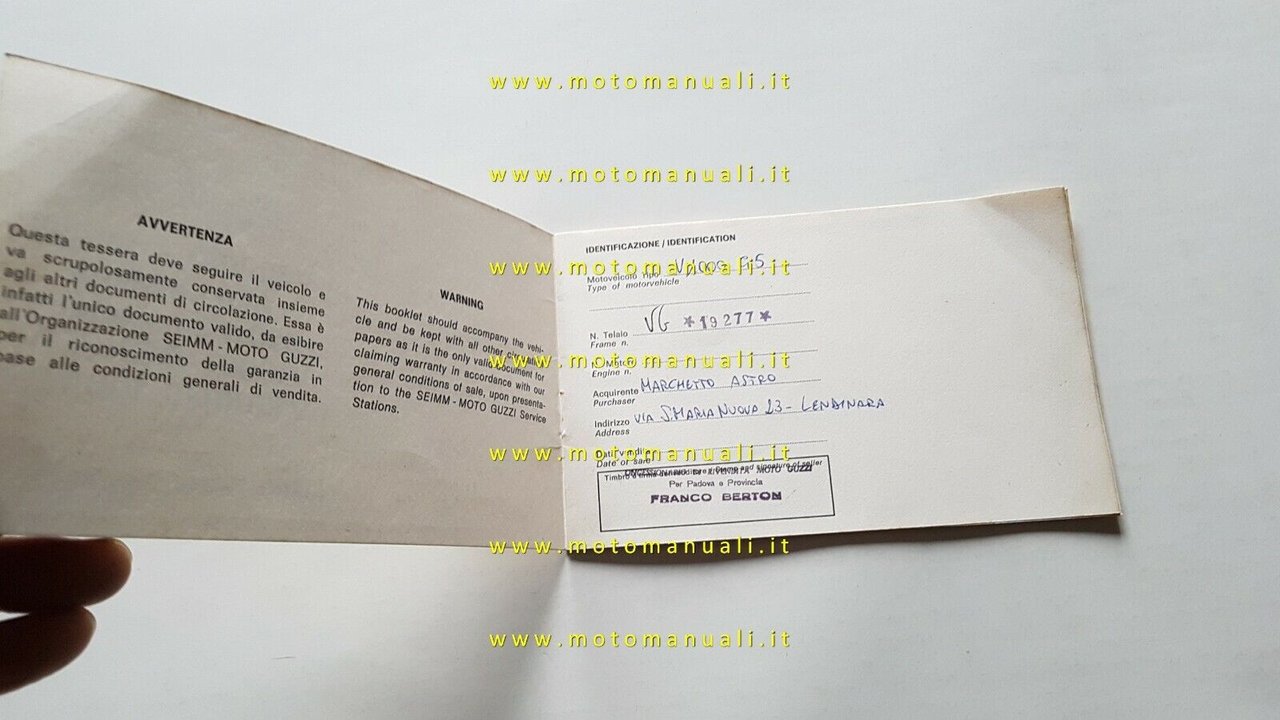 Moto Guzzi 1980 libretto tessera garanzia originale no depliant brochure | Libri antichi e moderni |