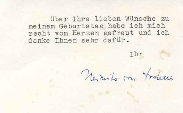 Ms. Briefkärtchen mit eigenh. U. | Libri antichi e moderni | Doderer, Heimito Von, Schriftsteller (1896-1966).