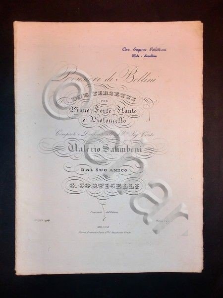 Musica Spartiti - Pensieri di Bellini - Due terzetti - G. Corticelli | Libri antichi e moderni |