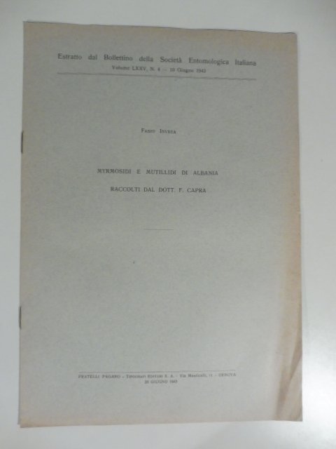 Myrmosidi e mutillidi di Albania raccolti dal dott. F. Capra | Libri antichi e moderni | Invrea Fabio
