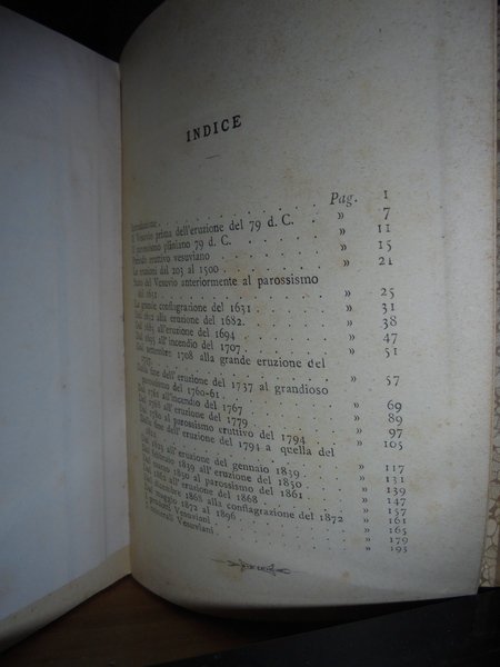 (Napoli) Mario, Baratta. Roma, Società Editrice Dante Alighieri, 1897. Il Vesuvio e le sue eruzioni dall' anno 79 d.C. al 1896. In-16°, tela con fregi e titolo in oro in rosso. (iv), 202 pp. con in fine una carta più volte ripiegata. Raro esemplare dell' edizione originale in perfetto stato di conservazione. Firma nella prima bianca. Neg. natura mob. 0