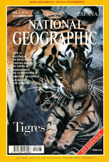 Revista Oficial de National Geographic Society, en español. Vol.1 nº3. Diciembre 1997. Rústica. 146 pp. Fotos. 25x17. Tigres. Arte. Geografia, etc. Edita RBA Publicaciones.