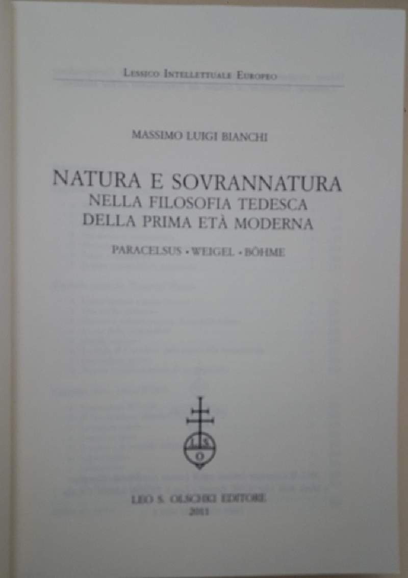 NATURA E SOVRANNATURA NELLA FILOSOFIA TEDESCA DELLA PRIMA ETA' MODERNA- PARACELSUS-WEIGEL-BOHME(2011) | Libri antichi e moderni | Bianchi Massimo Luigi