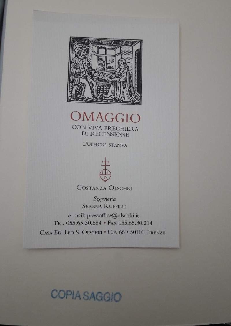 In 8', br. ed. pp. 404, pieghe al dorso e lievi segni d'uso alla cop., sporadici segni a margine n.t. piu intensi a p. 280/281(foto), altrimenti in buono stato, qualche segno da scaffale ai tagli. Conservato biglietto copia omaggio dell'editore, e timbro al contropiatto ant.(foto) ***Due to bureaucratic reasons, books dated over 70 years old cannot be immediately exported, please contact us before placing the order.***