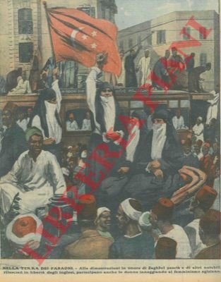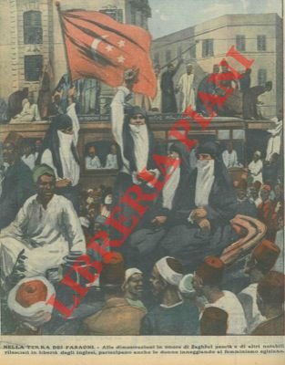 Nella terra dei faraoni. Alle dimostrazioni in onore di Zaghlul pascià e di altri notabili rilasciati in libertà dagli inglesi, partecipano anche le donne inneggiando al femminismo egiziano. | Libri antichi e moderni | Lombardi Ambrogio