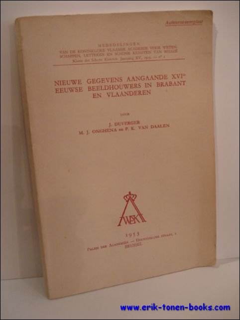NIEUWE GEGEVENS AANGAANDE XVIde EEUWSE BEELDHOUWERS IN BRABANT EN VLAANDEREN. | Libri antichi e moderni | Duverger J., Onghena M. J., Van Daalen, P.K.