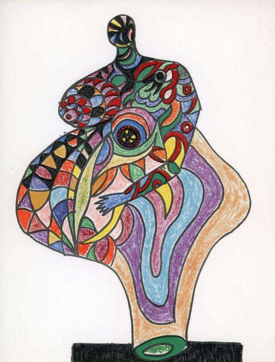 Catalogo di mostra. Con 4 litografie originali a colori sciolte riproducenti i disegni preparatori delle sue famose Nanas (cm 21,4x16,5). 7 ill. in nero delle sculture. Nota biografica e una foto in nero dell'Artista. Testo in francese . 8vo. pp. 22. . Molto buono (Very Good). Timbro di appartenenza (Owner's stamp). . . Prima esposizione delle ''Nanas'' avvenuta contemporaneamente a New York e a Parigi nel 1965.