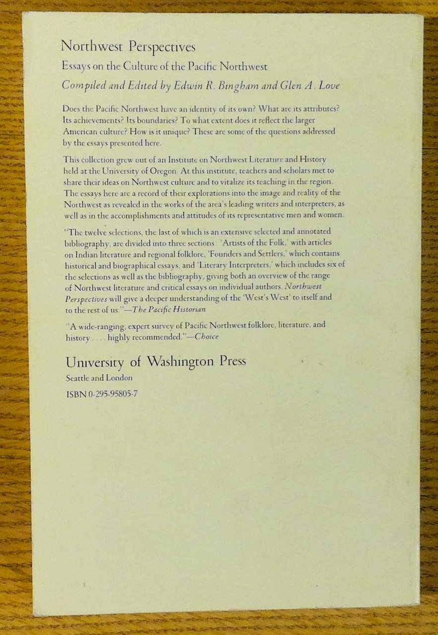 Northwest Perspectives : Essays on the Culture of the Pacific Northwest | Libri antichi e moderni | Bingham, Edwin R., Glen A. Love (Eds.) Jarold Ramsey, Barre Toelken, Norman Clark, Barnett Singer, Stanley Scott, George Venn, M.K. Singleton, Richard Etulain, Barbara Meldrum, George Armstrong, Kermit Anderbilt, Ward Tonsfeldt