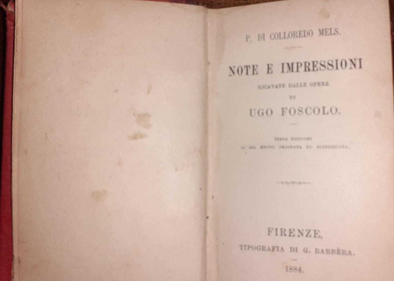 Note e impressioni ricavate dalle opere di Ugo Foscolo | Libri antichi e moderni | Colloredo Mels Pietro, ,Colloredo Mels Pietro