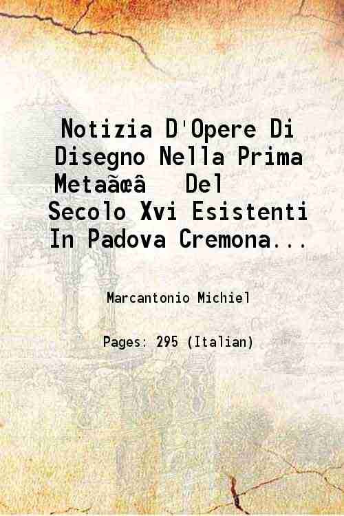 Notizia D'Opere Di Disegno Nella Prima Meta€ Del Secolo Xvi Esistenti In Padova Cremona Milano Pavia Bergamo Crema E Venezia esistenti in Padova Cremona Milano Pavia Bergamo Crema e Venezia 1800
