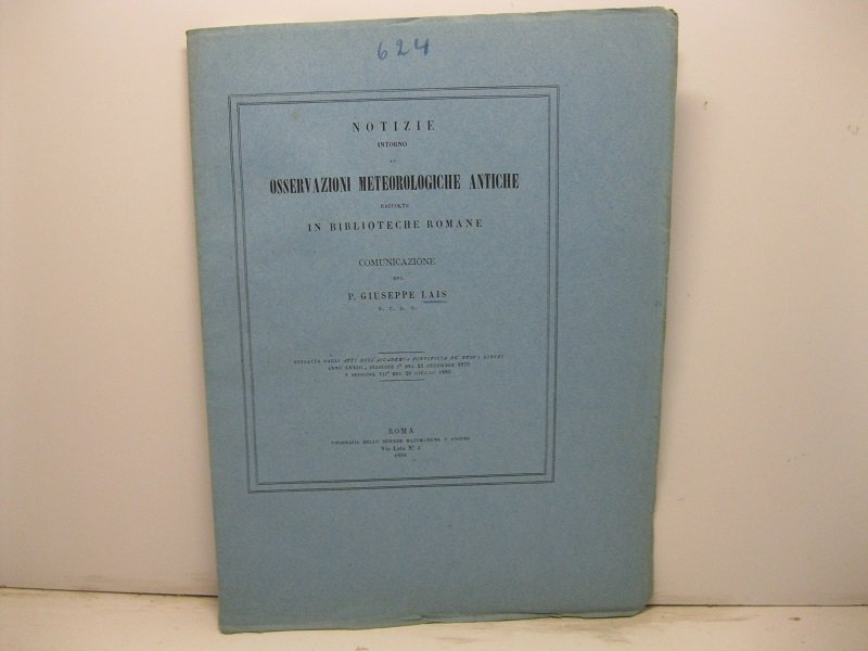 Notizie intorno ad osservazioni meteorologiche antiche raccolte in biblioteche romane. Comunicazione estratta dagli Atti dell'Accademia Pontificia de' Nuovi LIncei, anno XXXII | Libri antichi e moderni | Lais Giuseppe