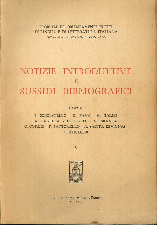 Notizie Introduttive e Sussidi Bibliografici | Libri antichi e moderni |