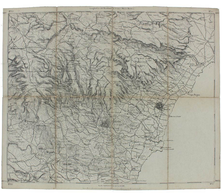 NOTO. Foglio N° 277 della Carta d'Italia. Scala 1:50.000. Longitudine del meridiano di Roma (Monte Mario)