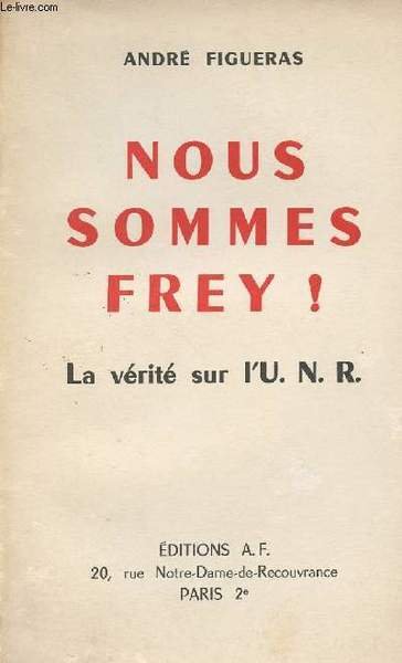 Nous sommes Frey ! La v�rit� sur l'U.N.R. | Libri antichi e moderni | Figueras Andr�