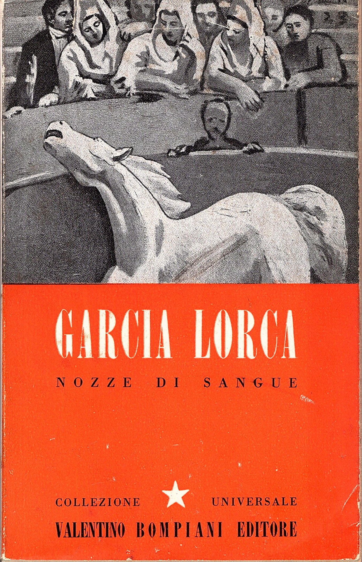 In-16° (18x11.5 cm), brossura editoriale grigia con titoli a due colori al dorso e al piatto anteriore, sovracoperta figurata con alette paratestuali. Collezione universale Corona, 14°. Minimi difetti alla sovracoperta ma ottimo esemplare. Non comune edizione originale di questa antologia ragionata di lavori poetici e teatrali di Lorca: Lamento per Ignazio Sanchez Mejias, Nozze di sangue e Dialogo dell' Amargo. Curatela e traduzioni di Elio Vittorini.