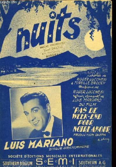 1950. In-8. En feuillets. Bon état, Couv. convenable, Dos satisfaisant, Intérieur frais. 2 pages de partitions, premier plat illustré d'une photographie de Luis Mariano. . . . Classification Dewey : 780.26-Partitions
