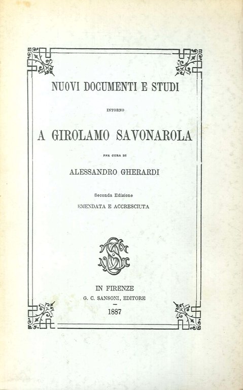 Nuovi documenti e studi intorno a Girolamo Savonarola | Libri antichi e moderni | Gherardi Alessandro