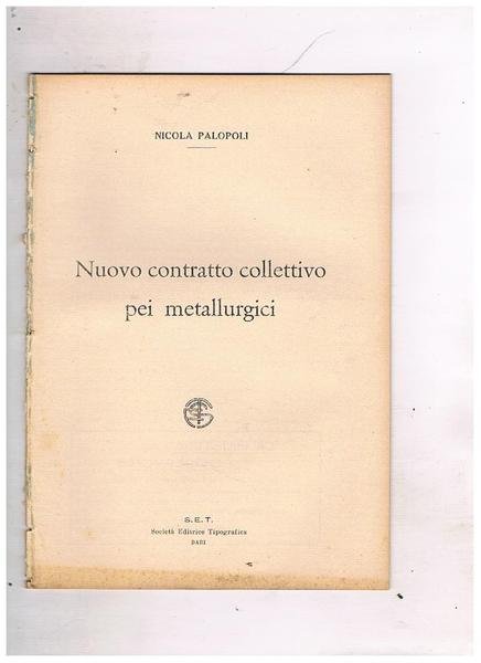 Nuovo contratto collettivo pei metallurgici. Estratto. | Libri antichi e moderni | Palopoli Nicola.