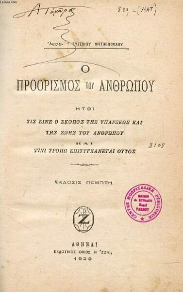 O PROORISMOS TOU ANTHR�POU (GREC) | Libri antichi e moderni | Matthopoulou Eusebiou