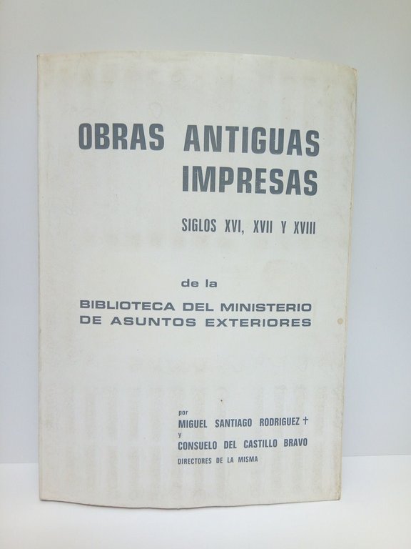 Obras antiguas impresas, siglos XVI, XVII y XVIII de la Biblioteca del Ministerio de Asuntos Exteriores, por.Directores de la misma | Libri antichi e moderni | Santiago Rodriguez, Miguel Y Consuelo Del Castillo Bravo