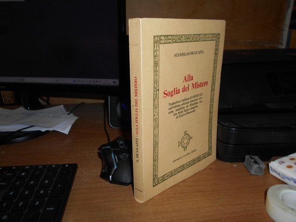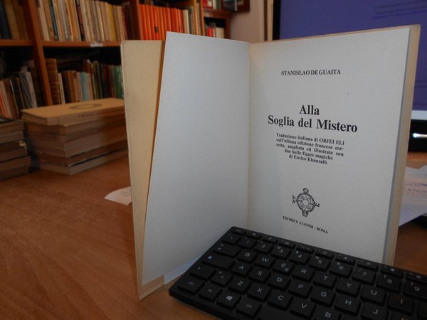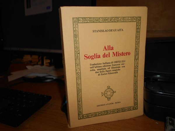 GUAITA, Stanislao de. Roma, Ed. Atanòr, 1974. Alla soglia del Mistero. Traduzione italiana di Orfei Eli sull' ultima edizione francese corretta, ampliata ed illustrata con due belle figure magiche di Enrico Khunrath. In-8°, cartoncino edit. con alette, 208 pp. con 2 tavole f.t. In ottimo stato di conservazione o come nuovo. Neg mob. 2
