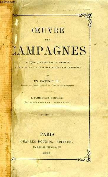 Charles Douniol. 1865. In-12 Carré. Broché. Etat d'usage. Tâchée. Dos fané. Rousseurs. 380 pages. Papier muet et étiquette de code collés sur le dos. . 2e édition augmentée. Par un ancien curé, Membre du Conseil Général de l'Oeuvre des Campagnes.