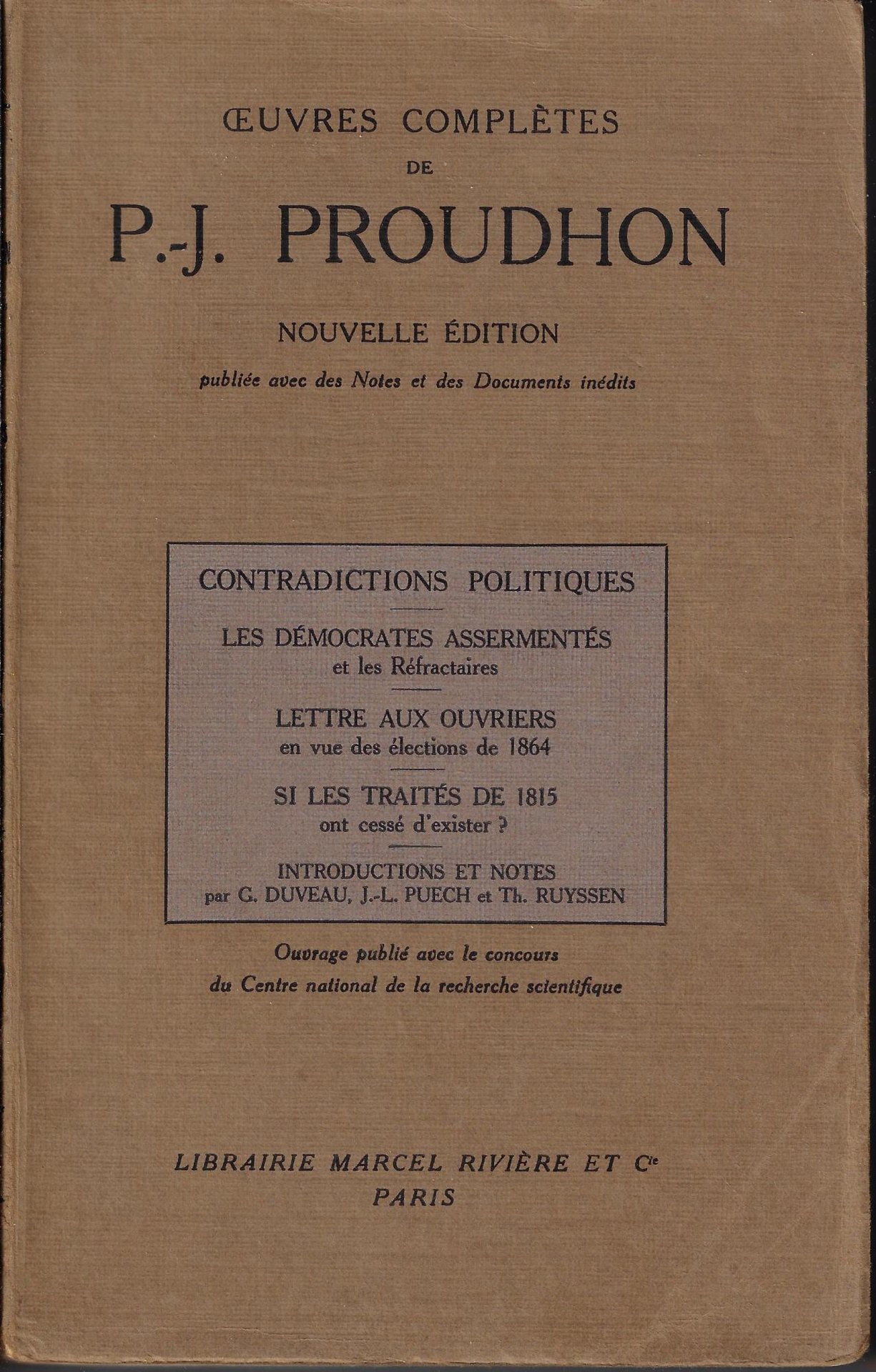 Oeuvres completes: Contradictions politiques ; Les democrates assermentes et les Refractaires ; Lettre aux ouvriers en vue des elections de 1864 ; Si les traites de 1815 ont cesse d'exister? | Libri antichi e moderni | Proudhon, Pierre-Joseph, ,Proudhon, Pierre-Joseph