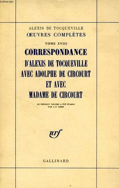 OEUVRES COMPLETES, TOME XVIII, CORRESPONDANCE D'ALEXIS DE TOCQUEVILLE AVEC ADOLPHE DE CIRCOURT ET AVEC MADAME DE CIRCOURT