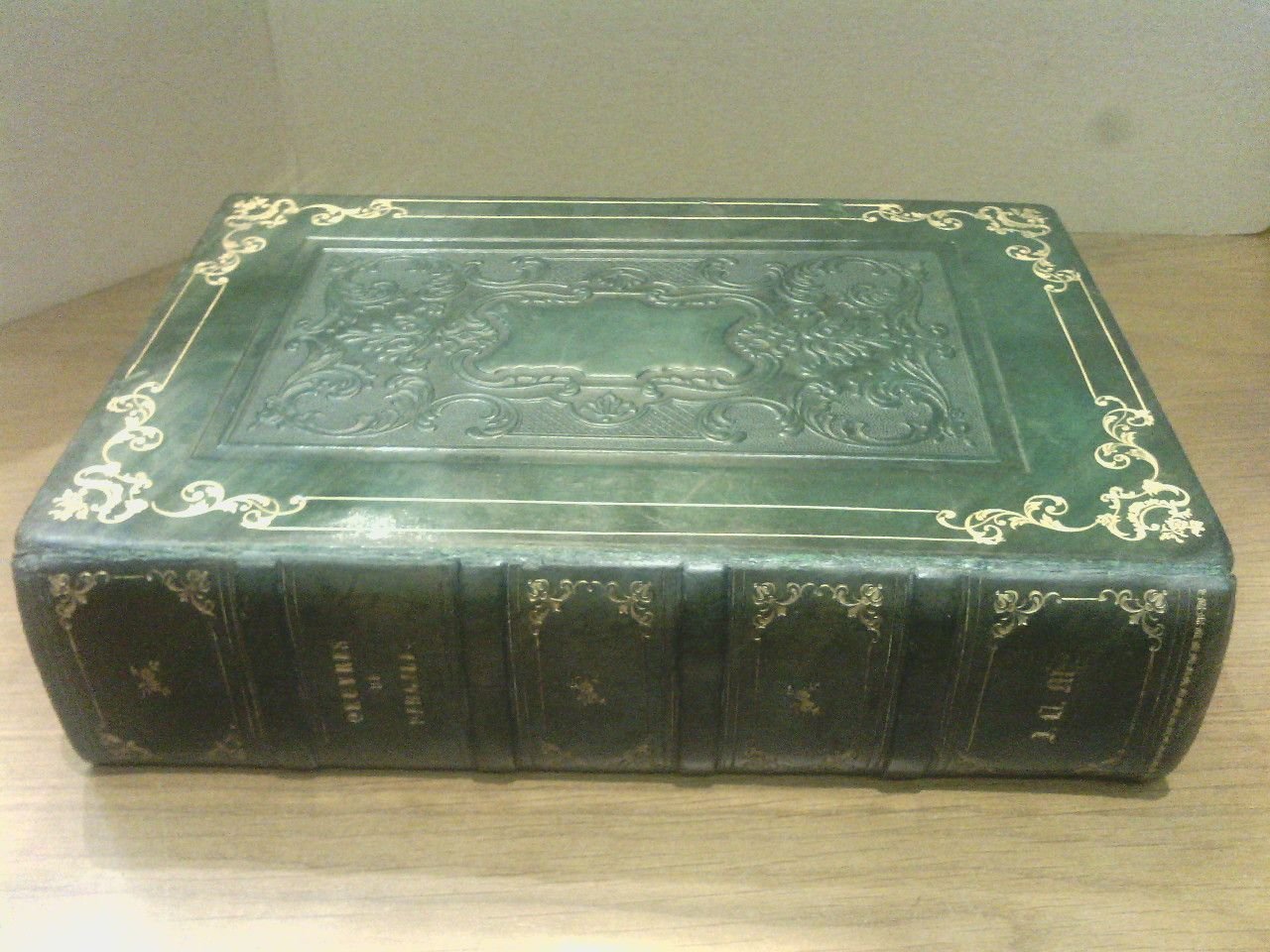 EDITION POLYGLOTTE, publiée sous la direction de J. B. MONFALCON, M. D.- Paris et Lyon [pero Imp. de Gabriel Rossary en Lyon]: Cormon et Blanc, Libraires, 1838.- XCVI p. (las primeras 6 p. en números normales, la 7 no está numerada y desde la VIII a la XCVIcontinúan ordinalmente en números romanos) + 1112 p.; 4º (27 x 19 cm.); edición en 6 idiomas (latín, francés, español, italiano, inglés y alemán); fina impresión a dos columnas; texto recuadrado; papel de hilo de fina textura; magnífica encuadernación el Plena Piel verde con planchas en seco, hilos dorados y florones en las esquinas de ambos planos o tapas, lomo con hilos, flores dorados y 4 nervios, cortes dorados.- MAGNIFICA EDICION POLIGLOTA DE ALTA BIBLIOFILIA.* La encuadernación tiene pequeños roces restaurados y algunas hojas tienen pequeñas señales de óxido. Las guardas de papel muaré algo sucias. Pero en general magnífico estado. GRECIA Y ROMA, FILOLOGÍA CLASICA