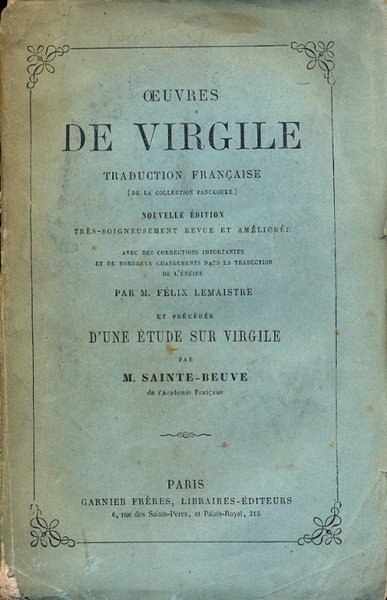 Oeuvres. Traduction francaise , avec des corrections importantes et de nombreux changements dans la traduction de l'Eneide par M. Felix Lemaistre et precedée d'une etude sur Virgile par M. Sainte Beuve.
