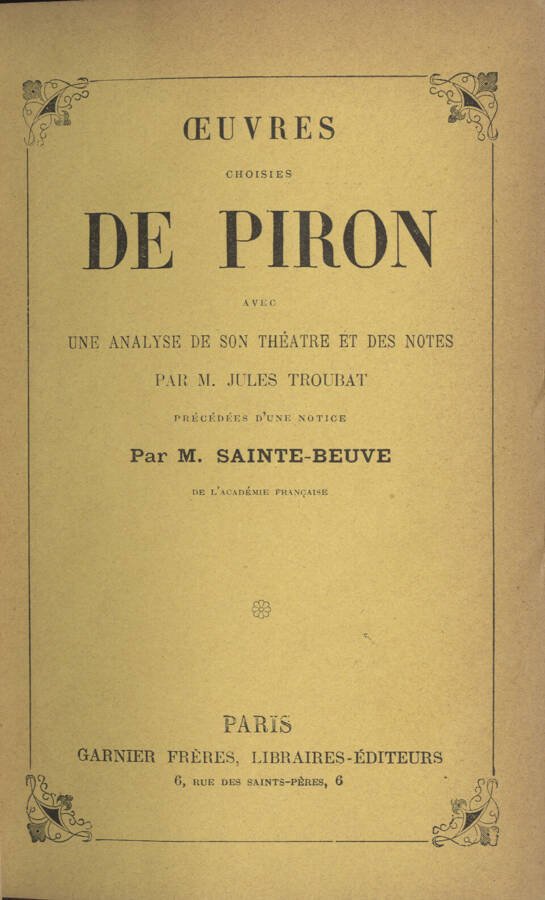 Legatura in mezza pelle con piatto marmorizzato. Titoli in oro al dorso con nervature e cornici in oro. Pagine in buono stato con bruniture, così ai tagli. Analisi sul teatro di M. Jules Troubat. Prefazione di M. Sainte - Beuve. Numero Pagine 584