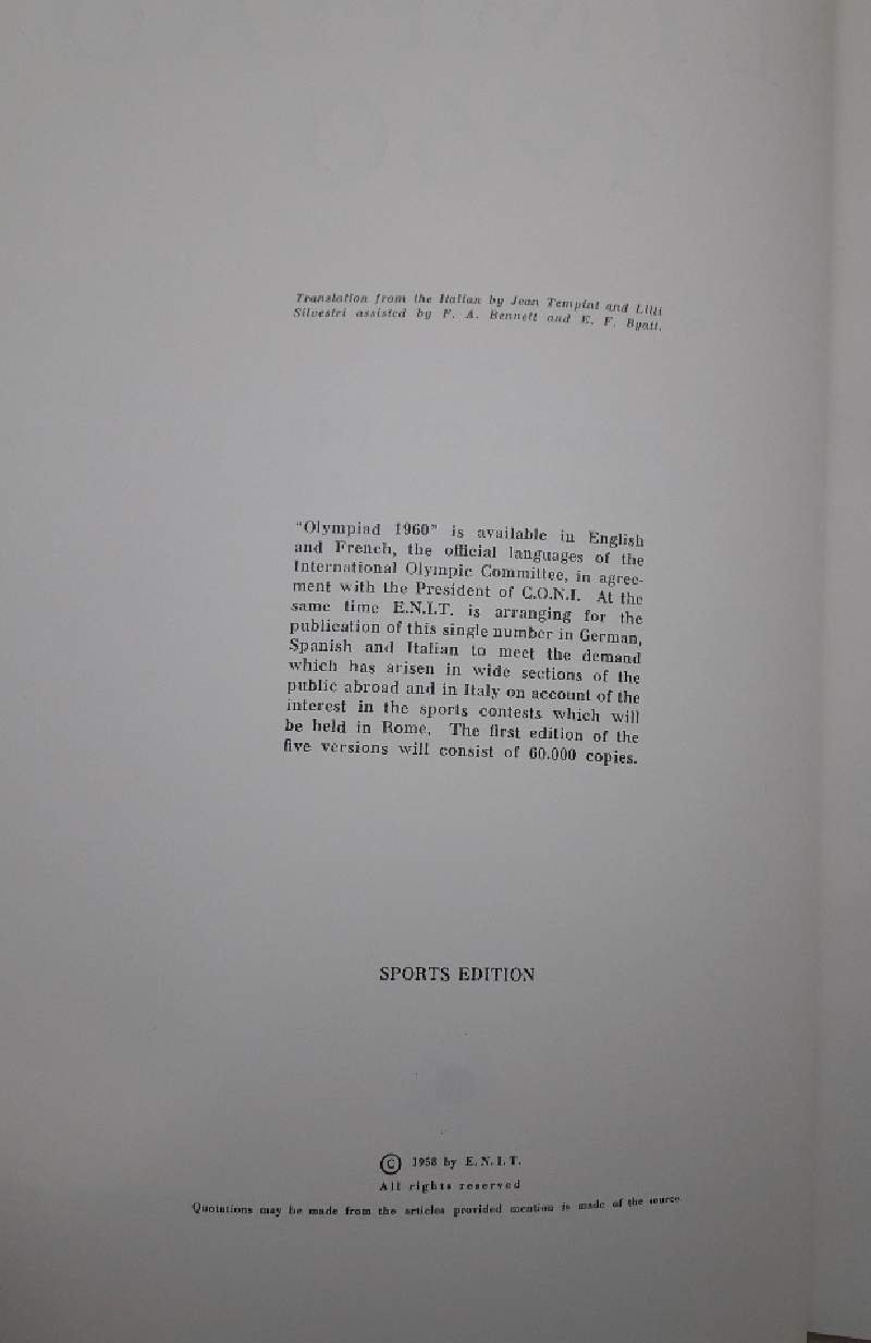 OLYMPIAD 1960-GAMES OF THE XVII OLYMPIAD ROME MCMLX(1958)