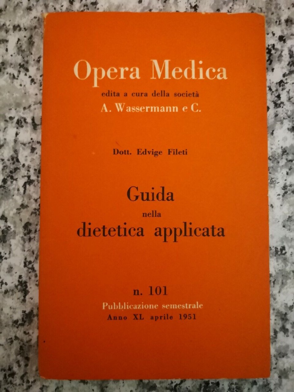 Opera Medica, guida nella dietetica applicata di A. Wassermann 1951,Sormani -F