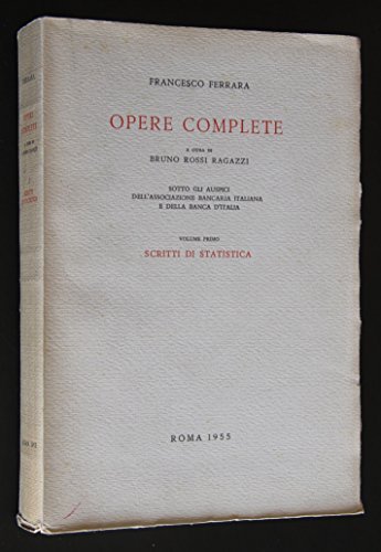 FRANCESCO FERRARA Opere Complete - Volume Primo - Scritti Di Statistica. , BANCA D'ITALIA 1955, 172 253 574 A CURA DI BRUNO ROSSI RAGAZZI. BROSSURA EDITORIALE, PICCOLA ETICHETTA AL DORSO, BUONE CONDIZIONI. (2859)