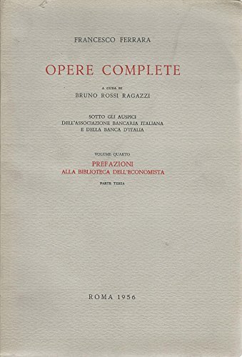 FRANCESCO FERRARA Opere Complete - Volume Terzo - Prefazioni Alla Biblioteca Dell'economista - Parte Seconda. , BANCA D'ITALIA 1956, 173 252 526 A CURA DI BRUNO ROSSI RAGAZZI. BROSSURA EDITORIALE, PICCOLA ETICHETTA AL DORSO, BUONE CONDIZIONI. (2860)