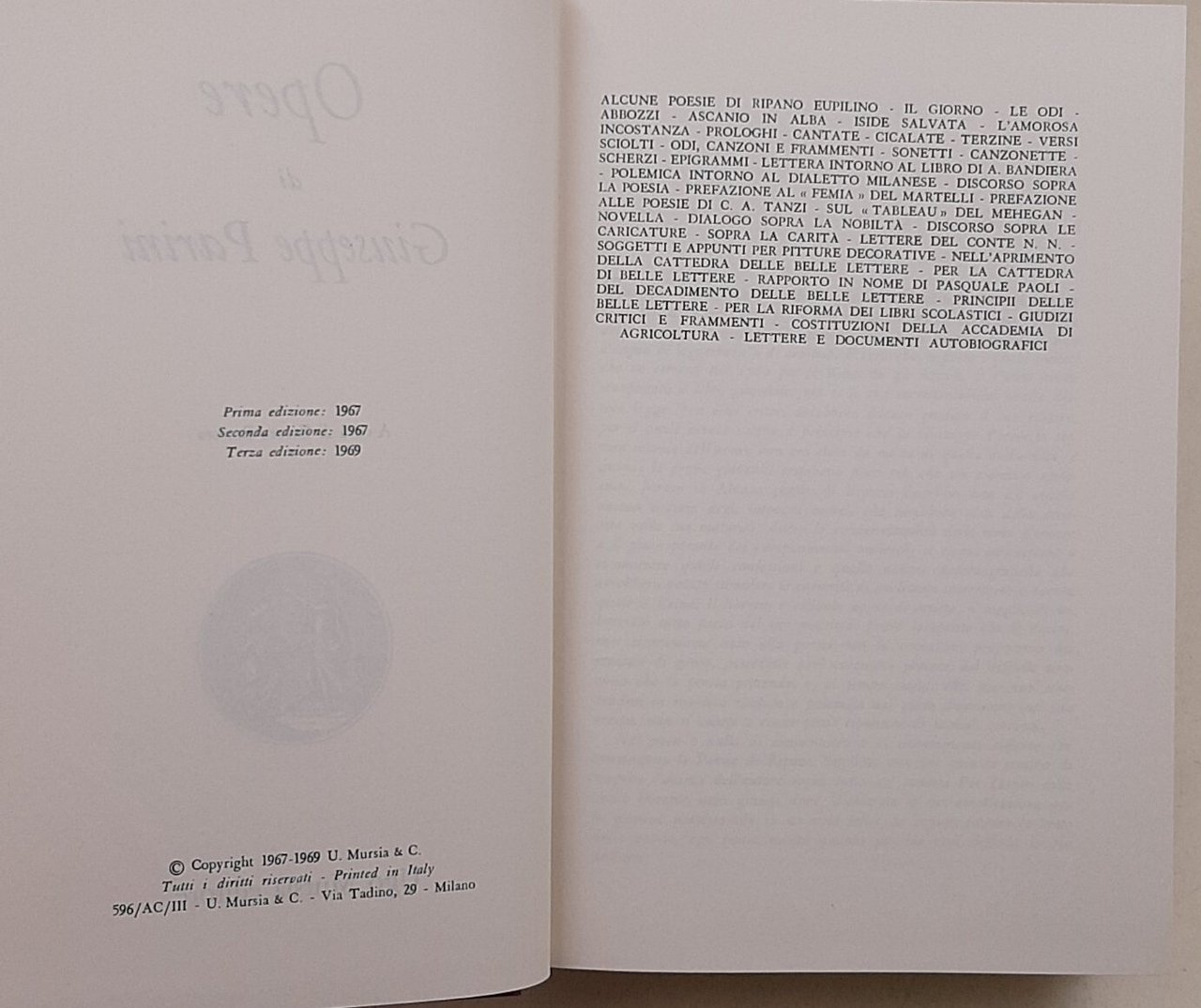 Opere di Giuseppe Parini | Libri antichi e moderni | Bonora, Ettore(a cura di)