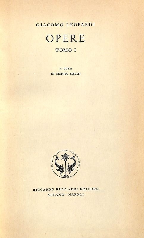 A cura di Sergio Solmi, XXXVIII+1104 p., f.to cm 23X14,5, copertina rigida. Molto buono, lievi bruniture al dorso, c