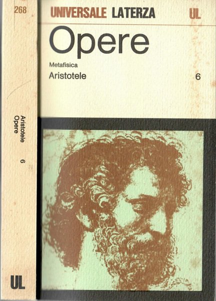 Opera incompleta disponibili: tomo VI nel dettaglio: vol. 6: Metafisica; n. 268 della collana, introd., indice dei nomi a cura di G. Giannantoni, traduzione in team. Brossure tascabili, copertina segnata da comuni sgualciture da conservazione e compressione, pigmento ingiallito e scolorito, ombrato da polvere da scaffale e aloni di umido, fogli velati da ossidazione avorio, intensa ai margini, scura e con fioriture ai tagli. N. pag. 440;