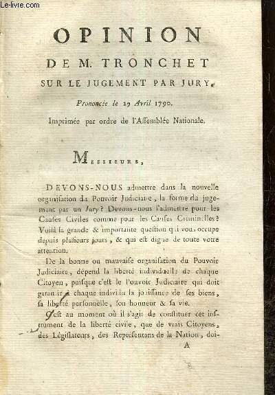 Opinion de M. Tronchet sur le jugement par jury, prononcée le 29 avril 1790 | Libri antichi e moderni | Tronchet M.