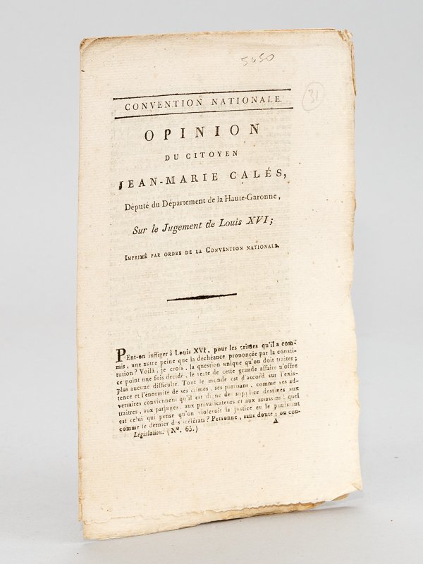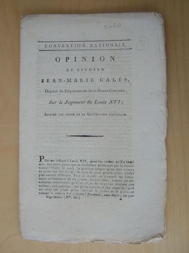 Opinion du Citoyen Jean-Marie Calès, Député du Département de la Haute-Garonne, sur le Jugement de Louis XVI | Libri antichi e moderni | Cales, Jean-Marie [ Calès, Jean-Marie (1757-1834) ]