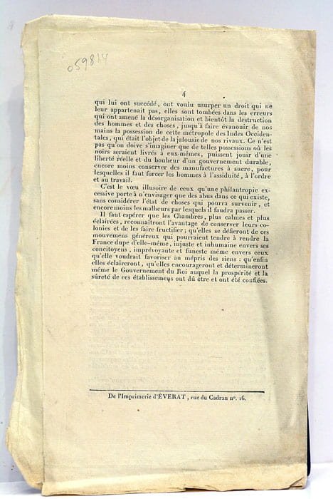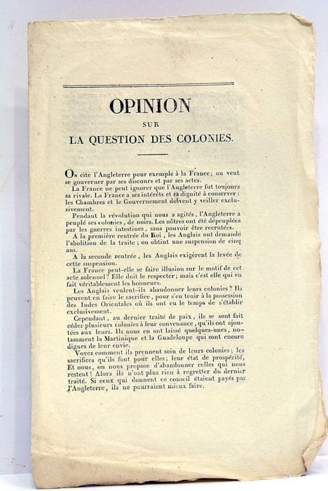 OPINION SUR LA QUESTION DES COLONIES. | Libri antichi e moderni |