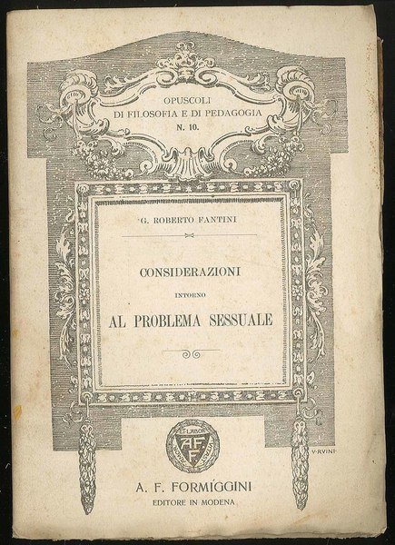Opuscoli di filosofia e pedagogia n. 10 Considerazioni intorno al problema sessuale | Libri antichi e moderni | Fantini G. Roberto, Fantini G. Roberto