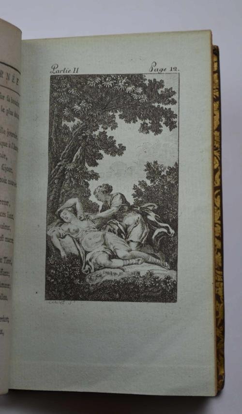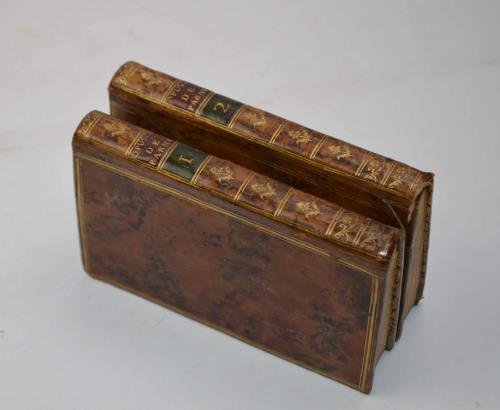 Due volumi di cm. 12,5, pp. (4) 203 (1); (4) 595 (1). Con due frontespizi incisi e 4 belle tavole stampate su carta azzurra. Legatura coeva in piena pelle bazzana, dorsi lisci con titoli e fregi in oro. Piatti inquadrati da doppio filetto dorato. tagli in oro e sguardie marmorizzate. Ben conservato.