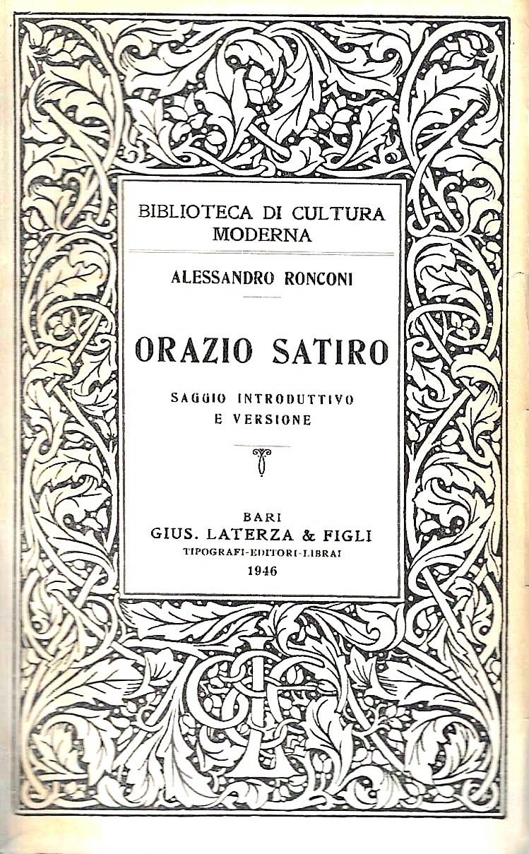 Orazio satiro. Saggio introduttivo e versione (Collana "Biblioteca di Cultura Moderna") | Libri antichi e moderni | Ronconi, Alessandro, ,Ronconi, Alessandro
